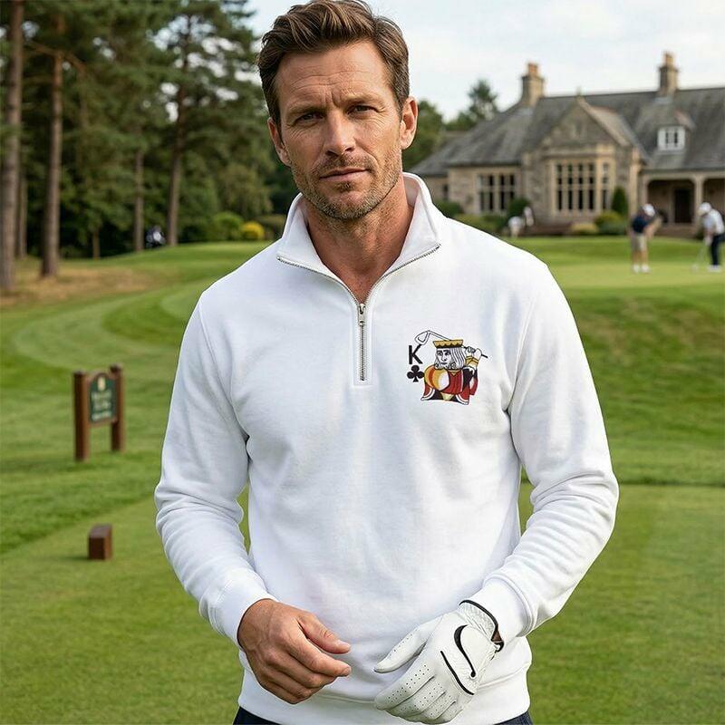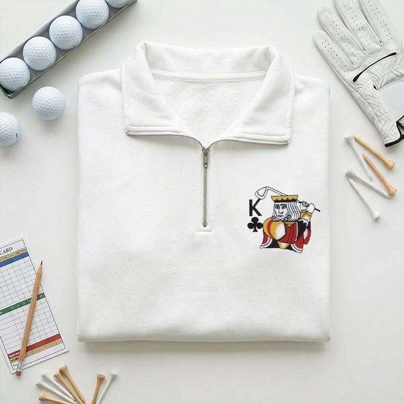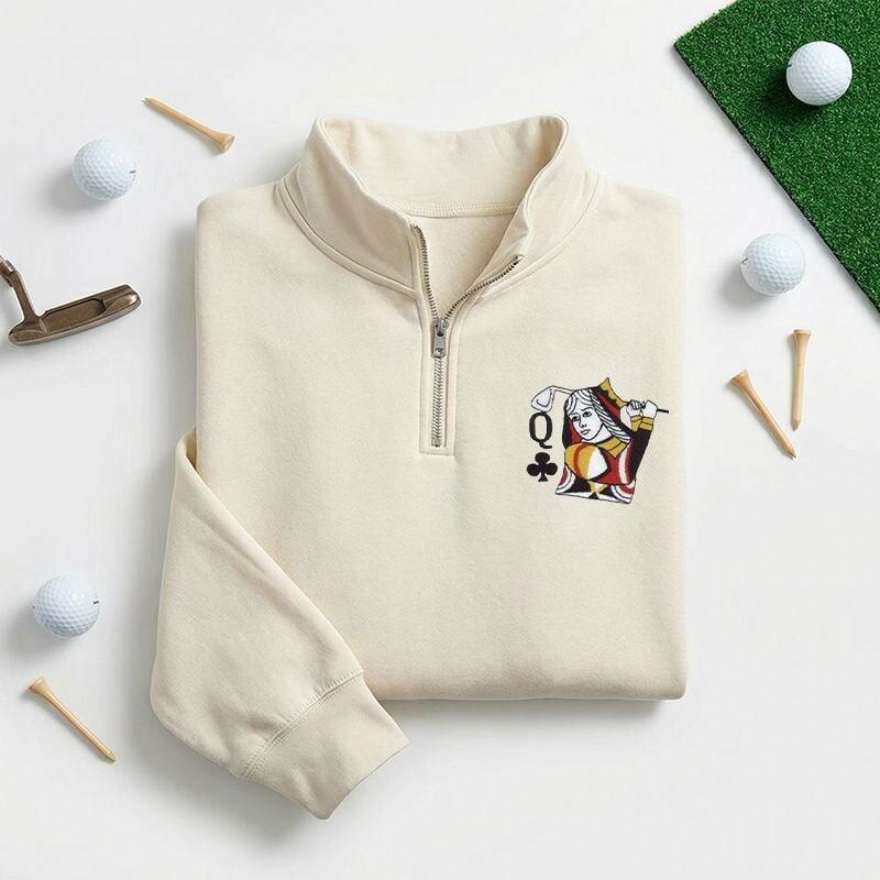 Personalisiertes Sweatshirt mit Viertelreißverschluss bestickt mit individuellen Initialen kreatives Geschenk für golfbegeisterte Paare