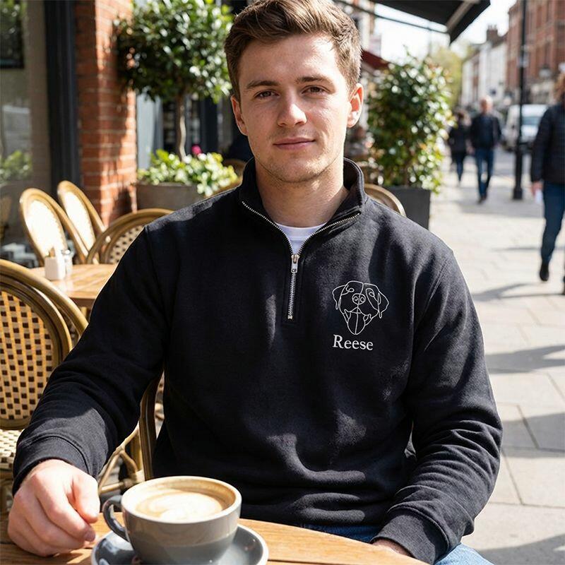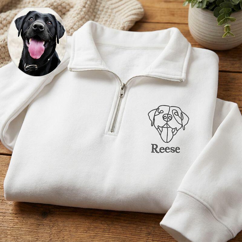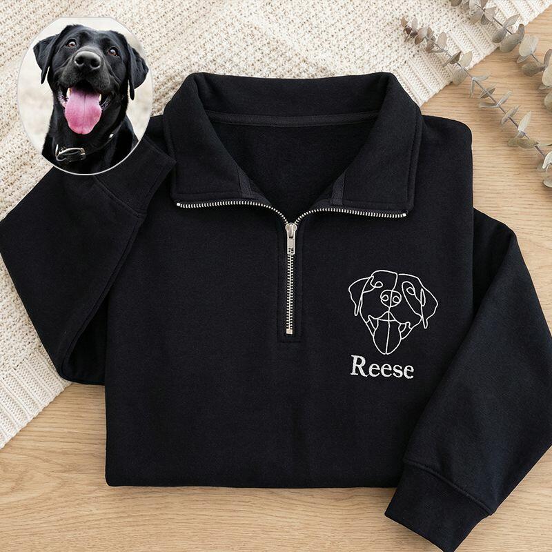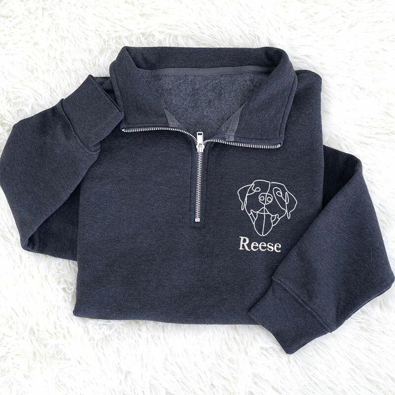 Personalisiertes Sweatshirt mit Viertelreißverschluss und gesticktem Foto des Haustiers Ein süßes Geschenk für Tierliebhaber