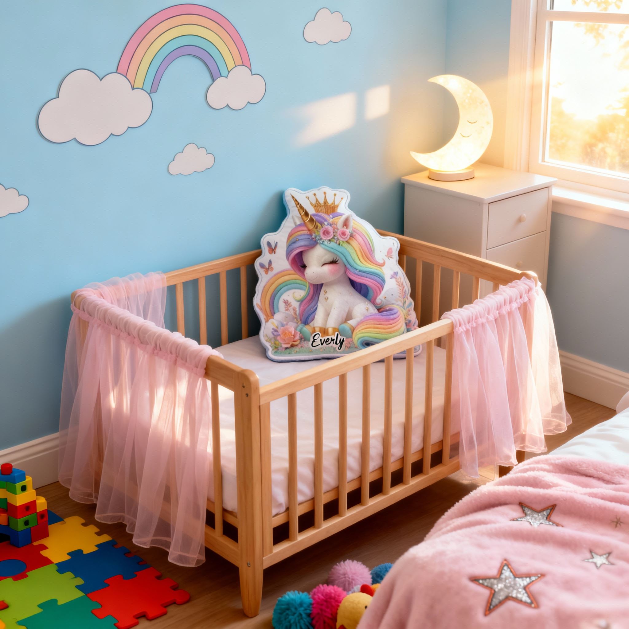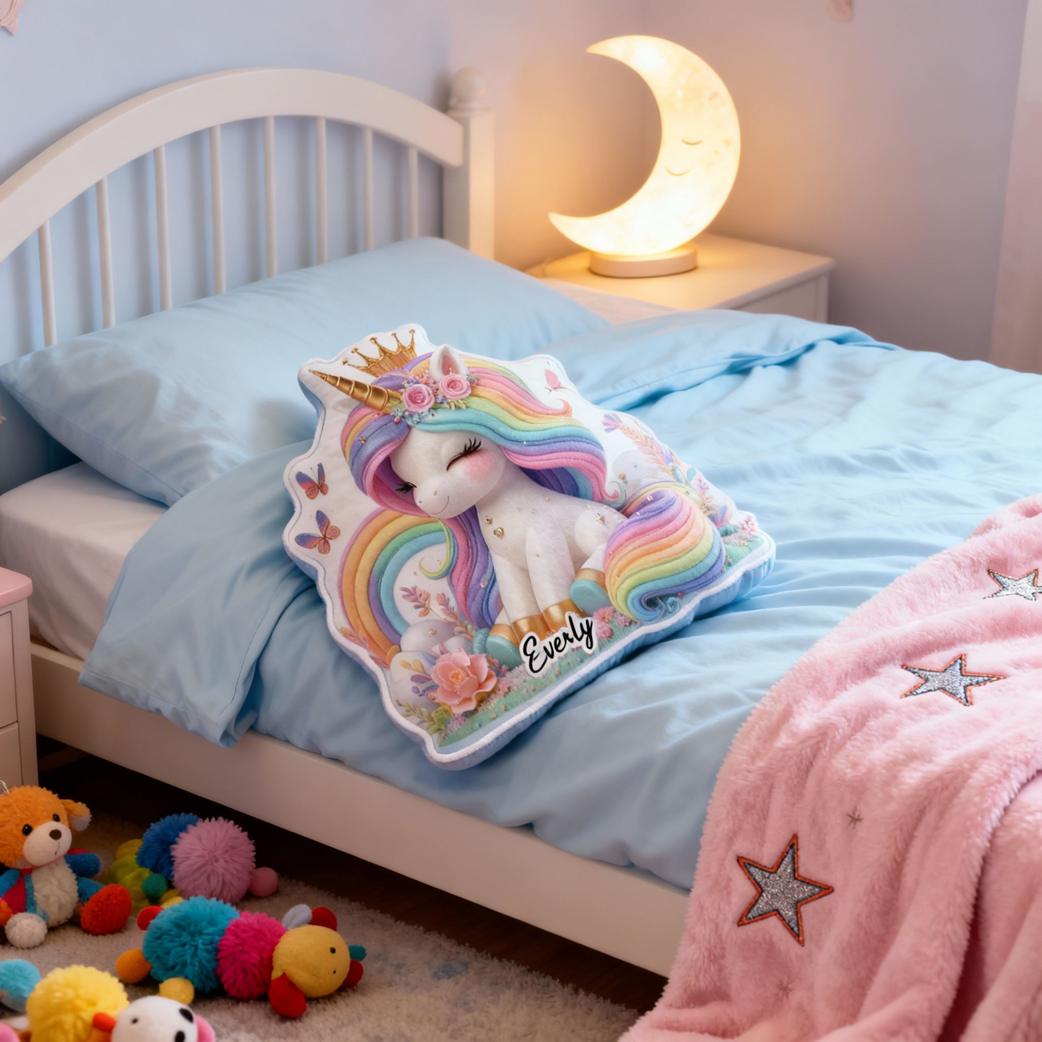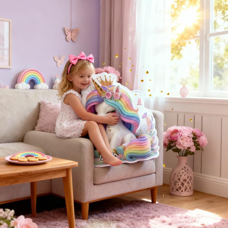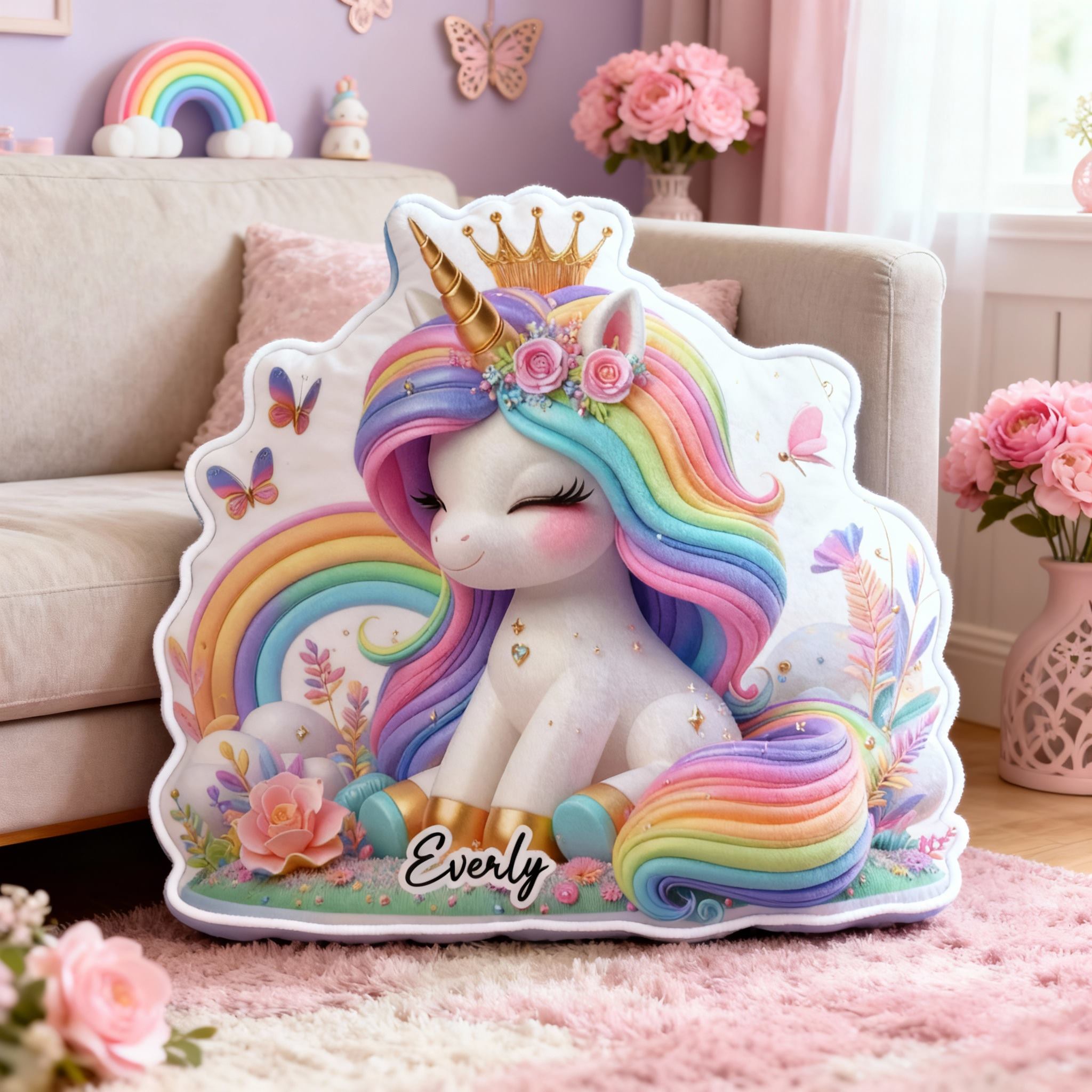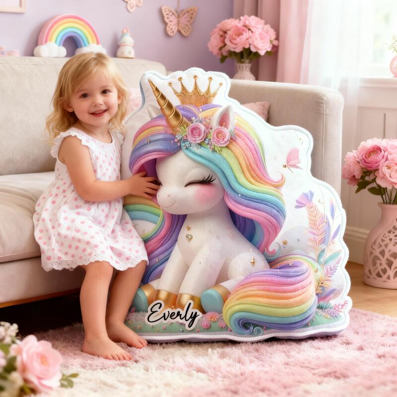 Personalisiertes Kissen mit Regenbogen-Einhorn individuell mit Namen gestaltbar Geschenk für Mädchen