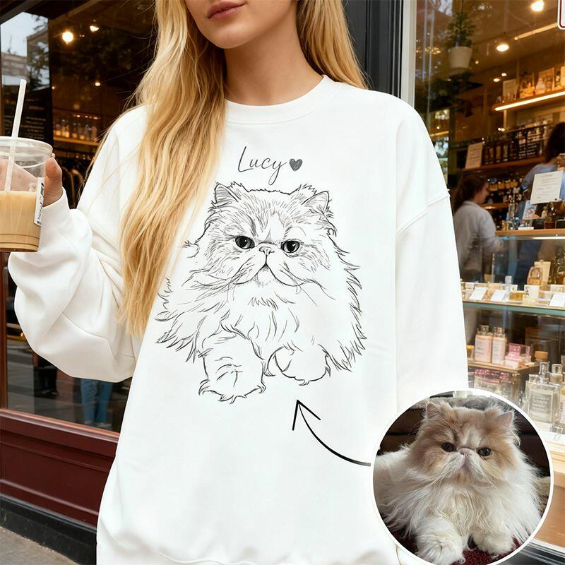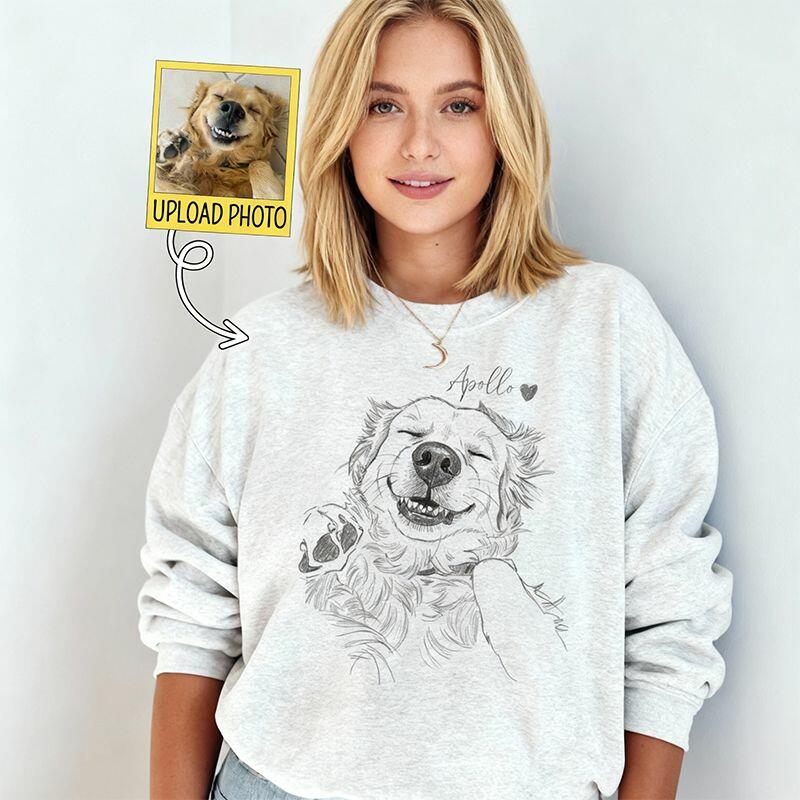 Personalisiertes Sweatshirt mit individuellem Haustierfoto im Skizzenstil attraktives Geschenk für Tierliebhaber