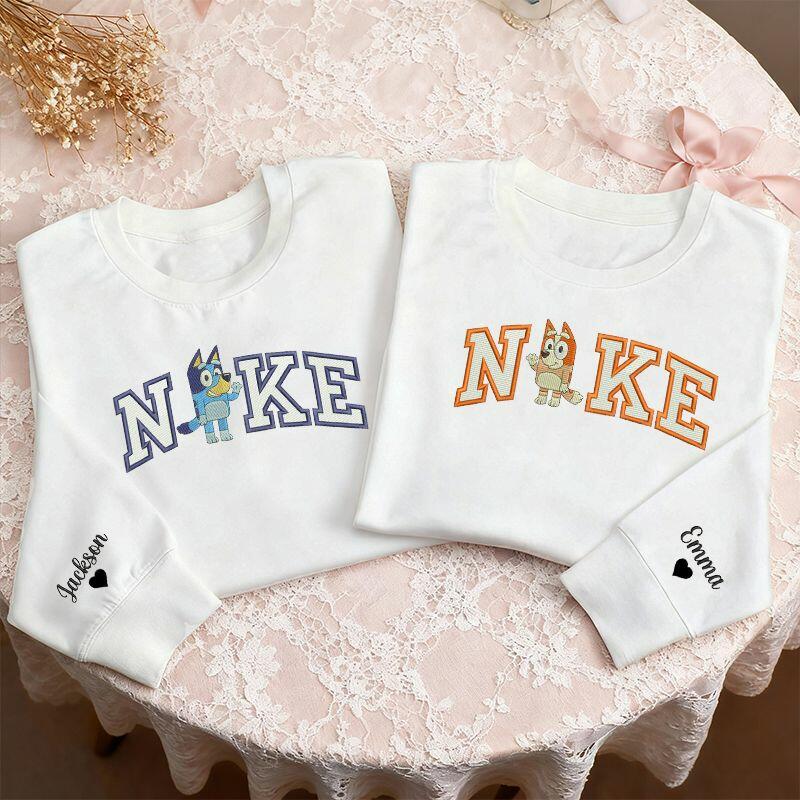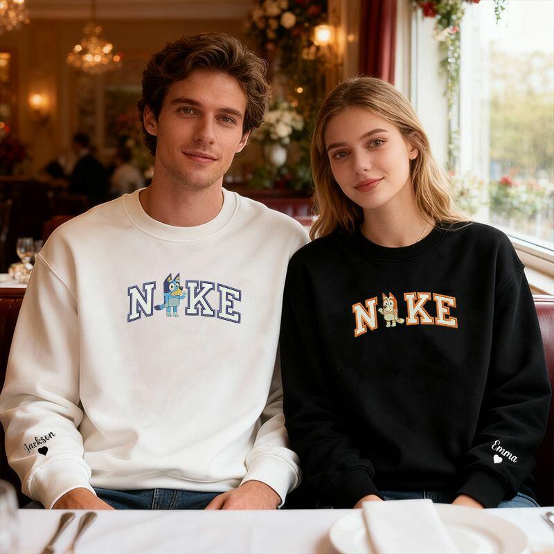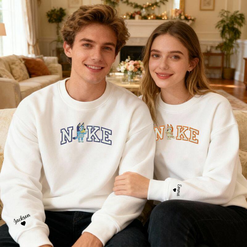 Personalisiertes Sweatshirt mit gesticktem Hundepaar-Cartoon-Design Lustiges Valentinstagsgeschenk für Verliebte