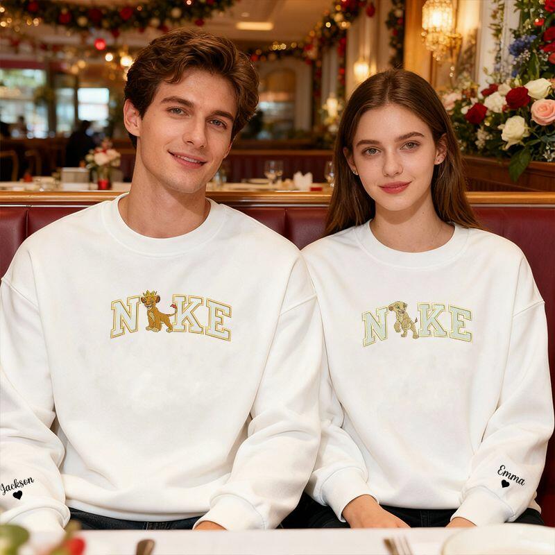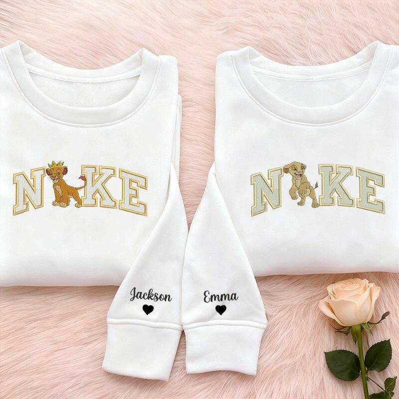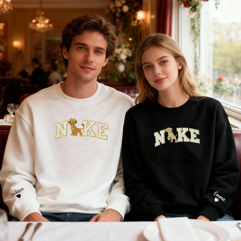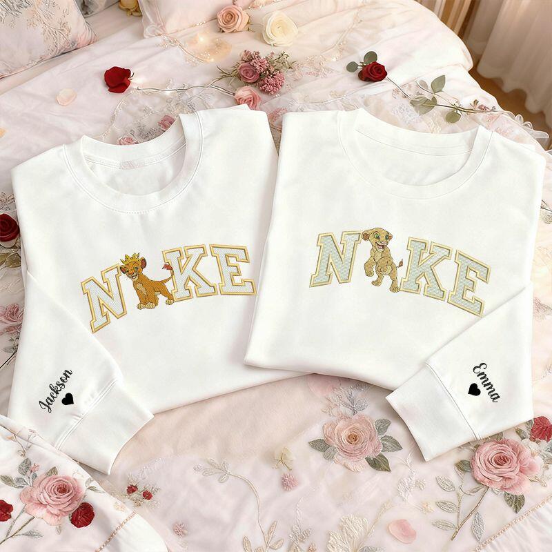 Personalisiertes Sweatshirt mit gesticktem Löwenpaar-Design perfektes Valentinstagsgeschenk für Verliebte