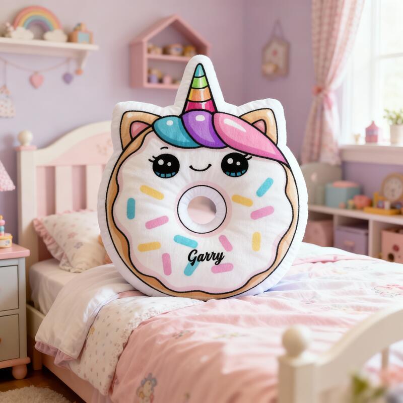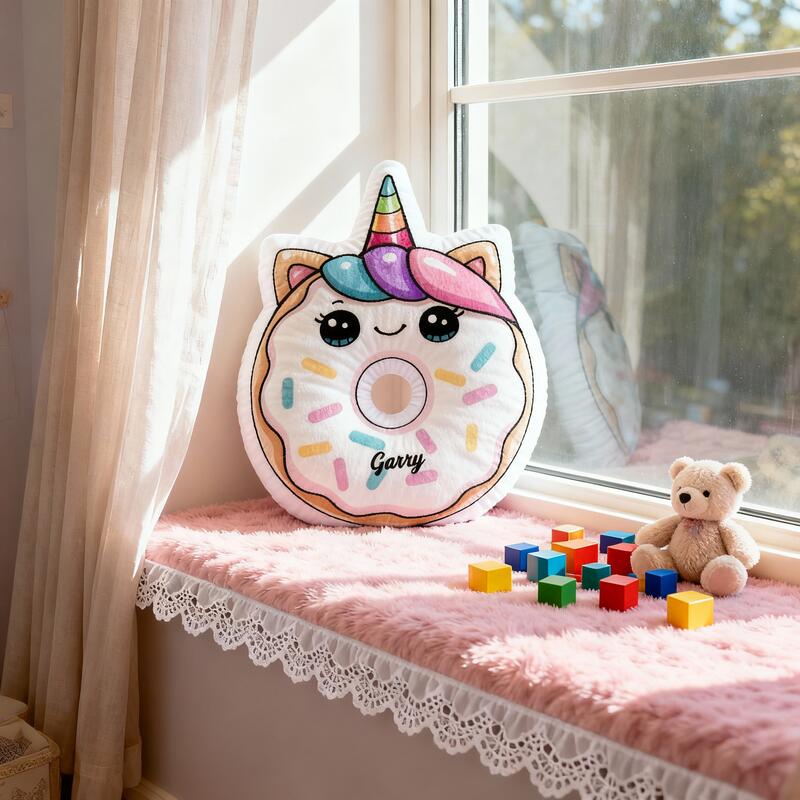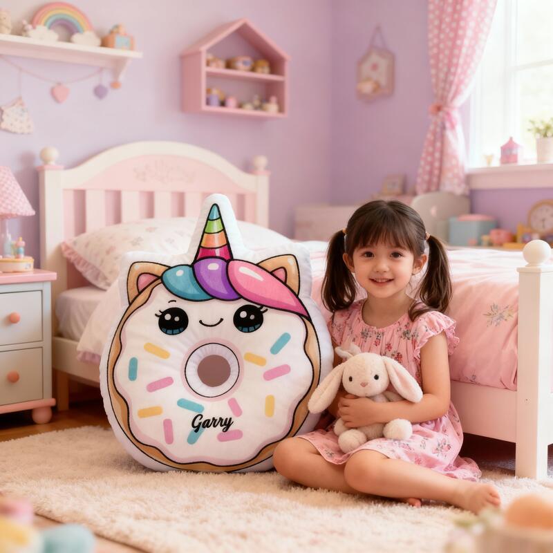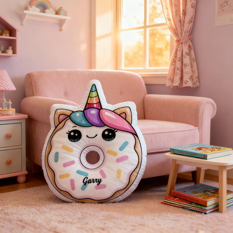 Personalisiertes Einhorn-Donut-Kissen individuell mit Ihrem Namen gestaltbar süßes Geschenk für Mädchen