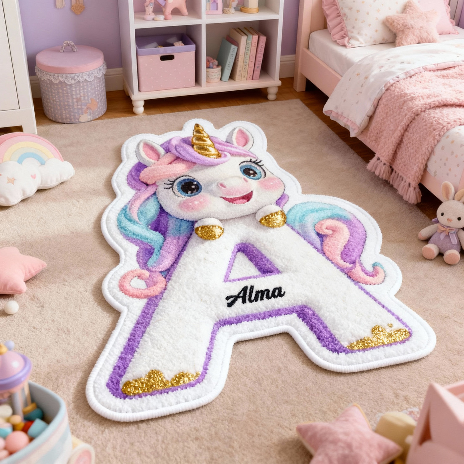 Personalisierte Einhorn-Fußmatten individuell mit Ihrem Namen gestaltbar süßes Geschenk für Kinder