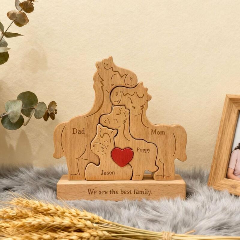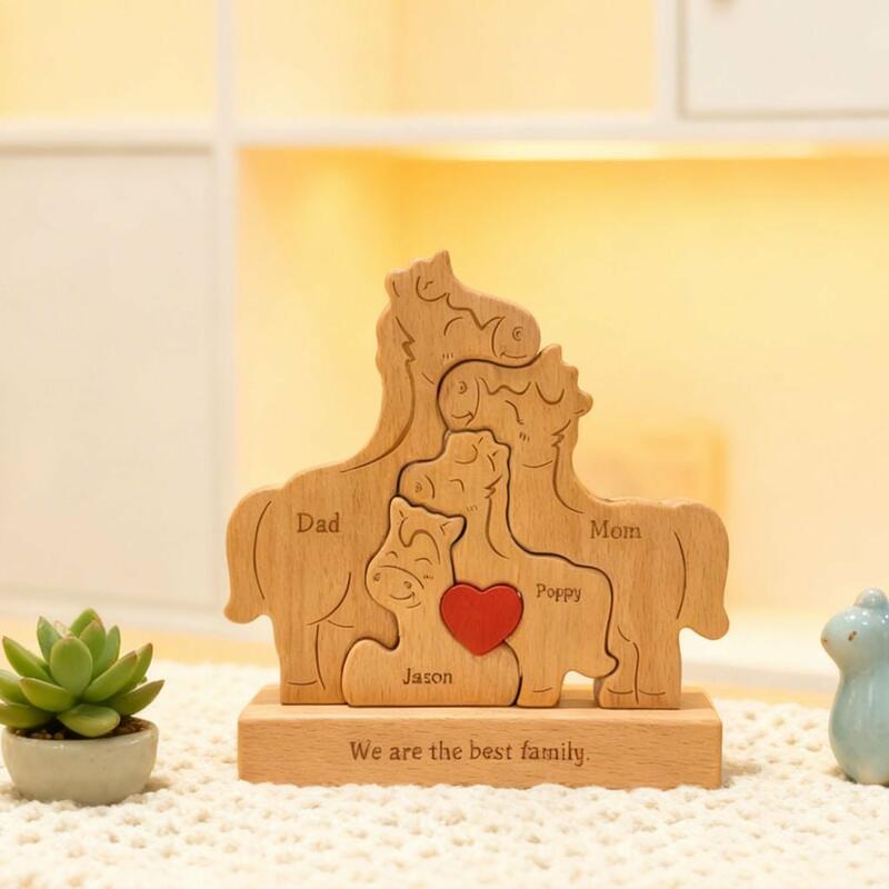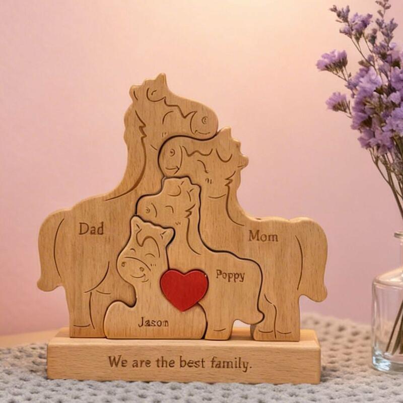 Personalisiertes Holzpuzzle der Pferdefamilie mit Namen anpassbar zum Muttertag