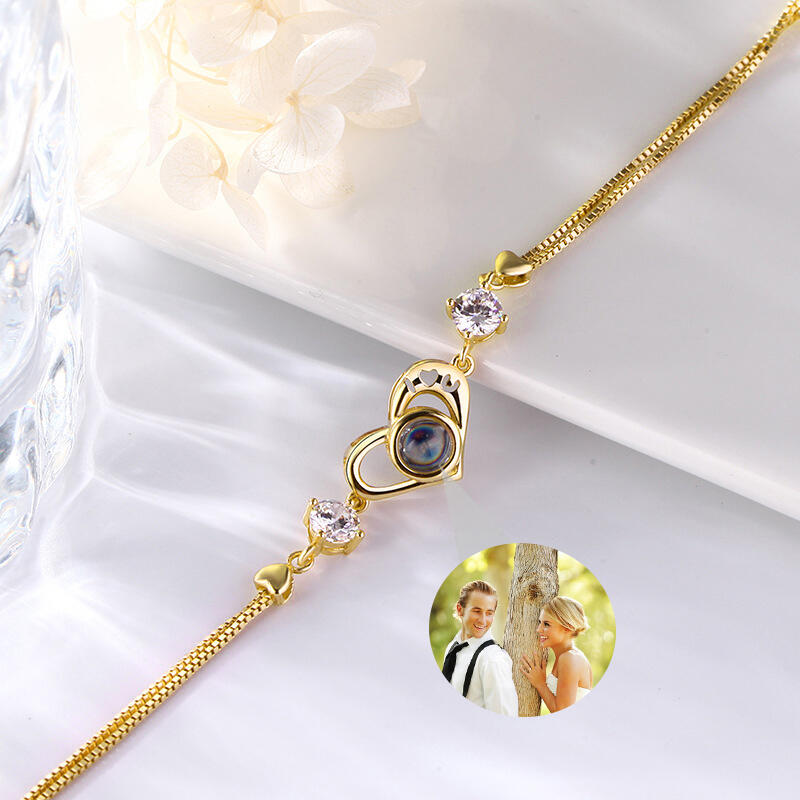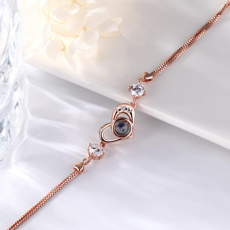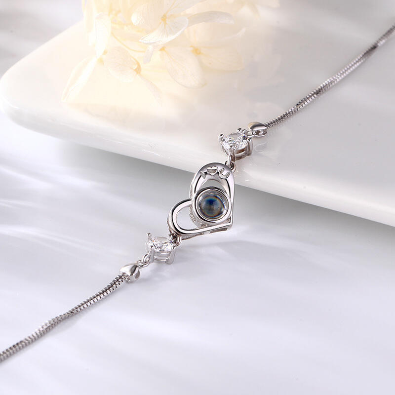Personalisiertes Romantisches Herz Foto Projektion Armband mit Steinen Sterling Silber